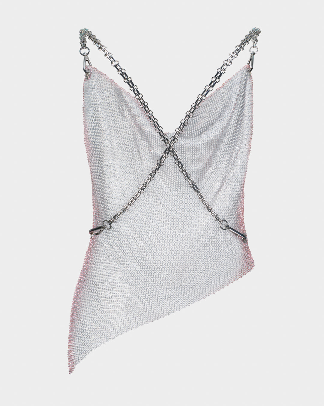 Material: Silver crystal mesh with light rosé crystals (lightweight aluminum crystal chainmail mesh)